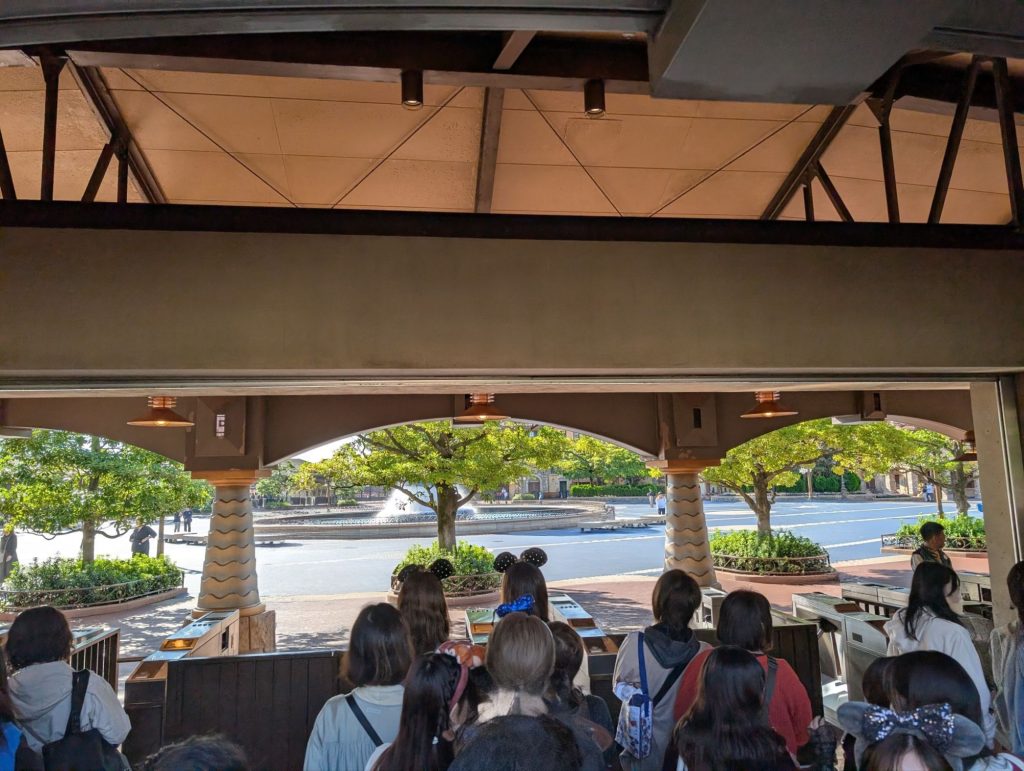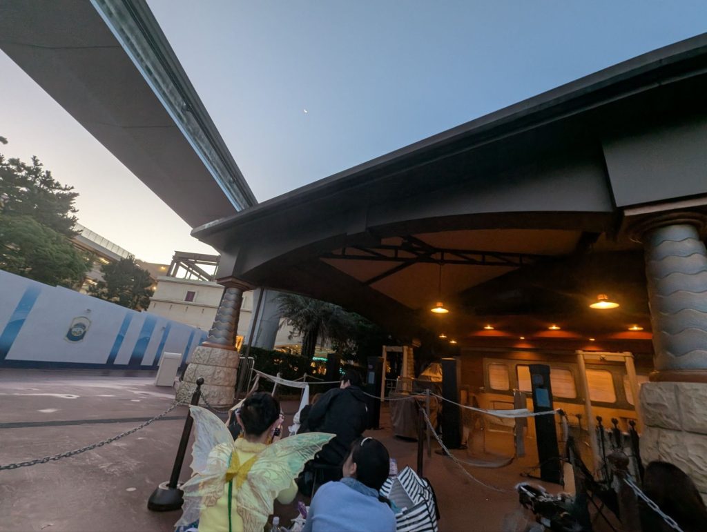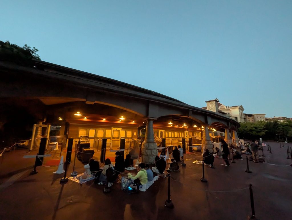 0525 まだほぼ真っ暗のディズニーシーのノースゲートに到着。平日だけあって、並んでいる人数が少ない!前から4番目に並ぶことができました。