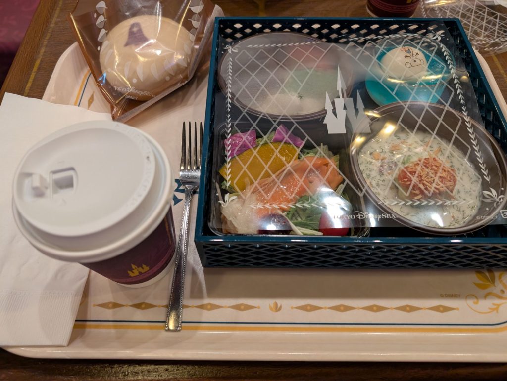 0957 ファンタジースプリング内のアナ雪の場所を散策していたら、アレンデール・ロイヤルバンケットというレストランにモバイルオーダーで予約なしに入ることができることが分かったので、そちらに入店。