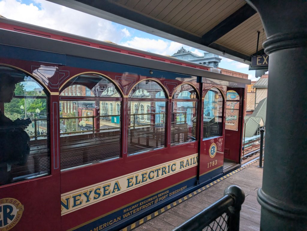 1210 エレクトリックレールウェイの アメリカンウォーターフロントに並ぶ。15分待ちとの表示。