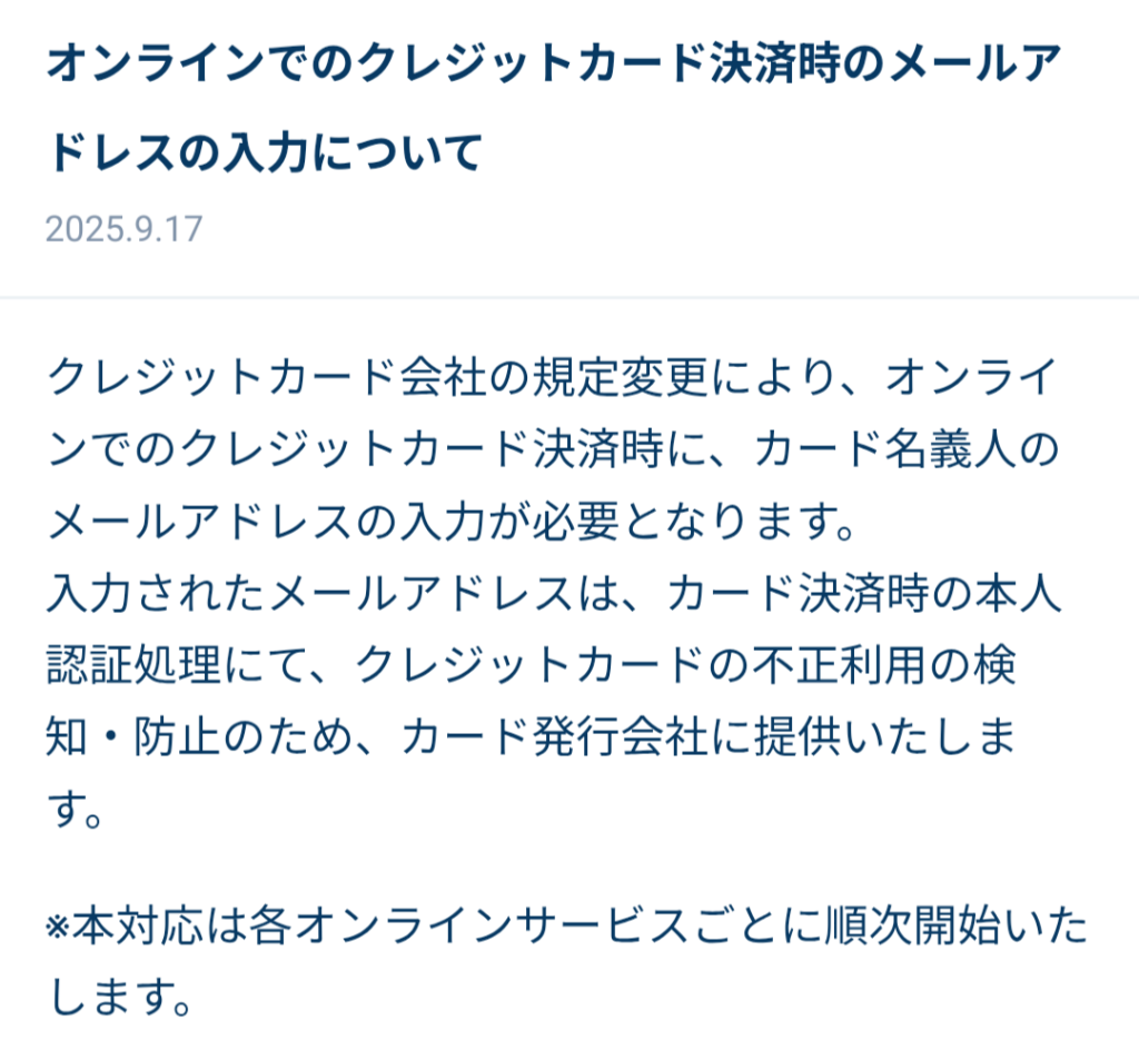 のDPAを予約。今回は決済時にメールアドレスの入力を求められました。それにしても、DPAを購入するたびにSMSにパスコードが届いて、それを間違えないように入力するのが面倒です、、、