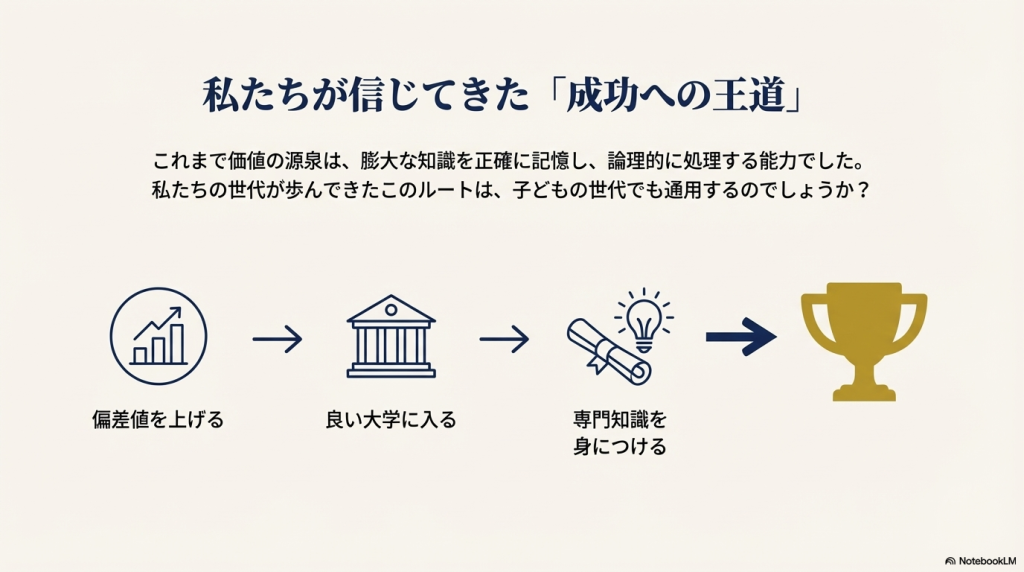 という王道ルート(でもないような気もしますが)が、子どもの世代でも通用するのか?答えは、残酷ですが 「No」 である可能性が高いです。