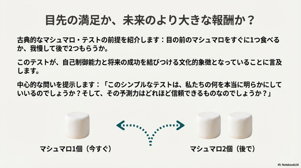 マシュマロテストの論文とその後をGoogle NotebookLMに解説してもらう【Mischel, 1972】