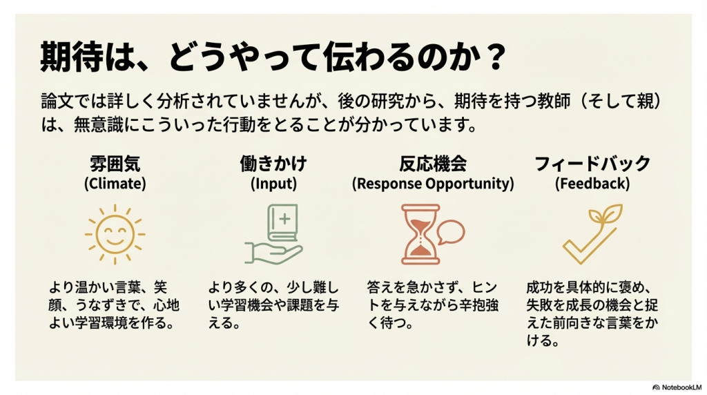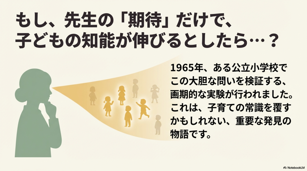 この研究の核心は、**「教師が抱く期待という心理的な要因(介入)が、児童の実際の知的能力(結果)を形成する」**という自己充足的予言(self-fulfilling prophecy)の実証にあります。