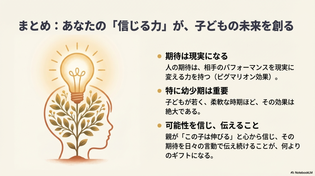 この現象は、あたかも**「彫刻家が石像に命が宿ることを心から願ったことで、石像が本物の人間に変わった」というピグマリオンの神話**のように、周囲の期待が対象者の可能性を現実のものに変えてしまう力を象徴しています。