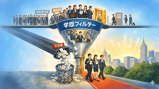 大学受験のトレンドが大きく変わる一方で、多くの親御さんが最終的に気にする「就職」の世界には、変わらない現実も存在します。それは、新卒一括採用における「学歴フィルター」です。