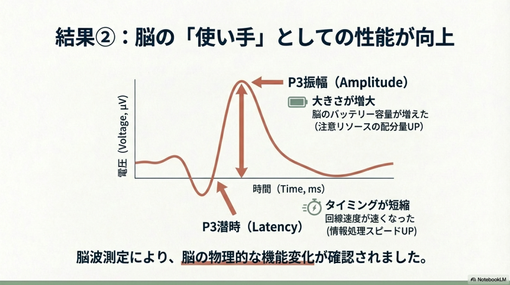 → 注意資源をより多く割けるようになった - P3潜時の短縮