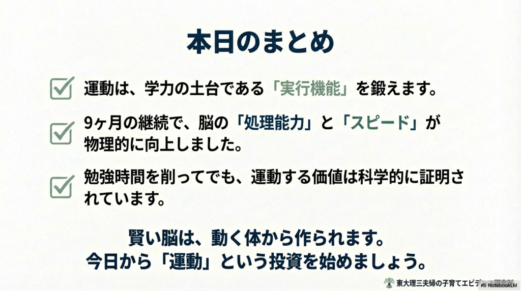 - ✅ 運動は子どもの「脳の実行機能」を因果的に改善する