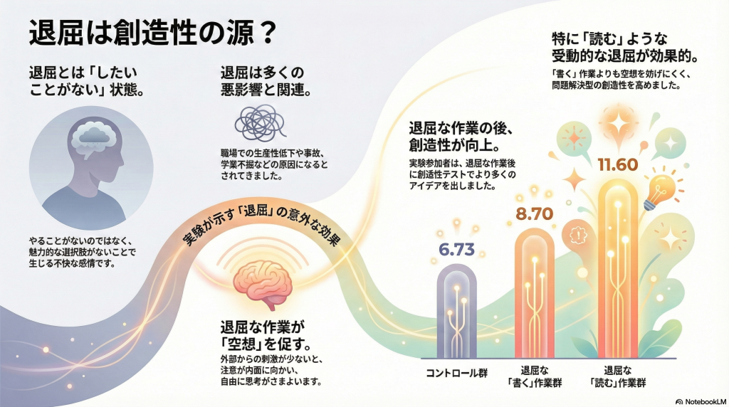 Mann, S., & Cadman, R. (2014). Does being bored make us more creative? Creativity Research Journal, 26(2), 165–173. https://doi.org/10.1080/10400419.2014.901073