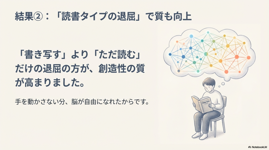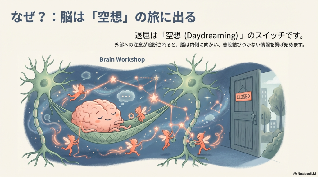 という疑問点が出てきました。そこで、今回、ぼーっとしていることにも意味があるよという論文を、ChatGPTとGeminiに探してきてもらいました。今回の論文は“空想(マインドワンダリング)”が創造性に関与することを示しており、これは後の脳科学研究で