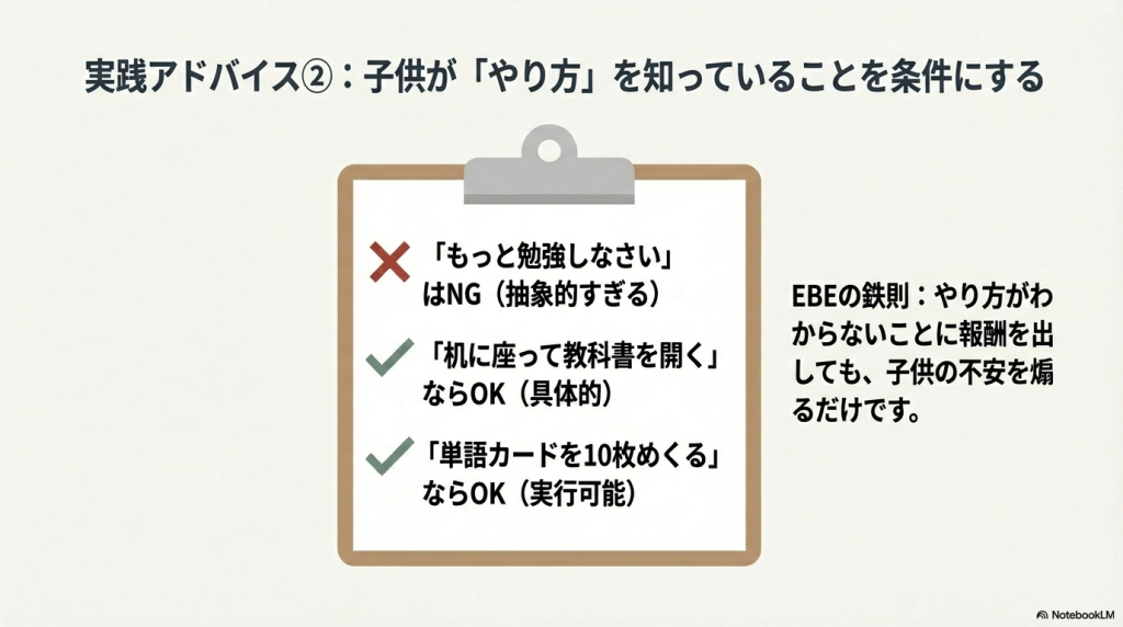- 子ども自身が「何をすればよいか」理解できる