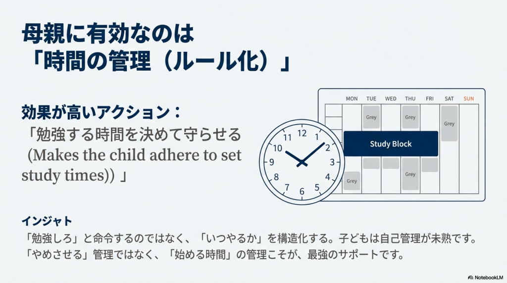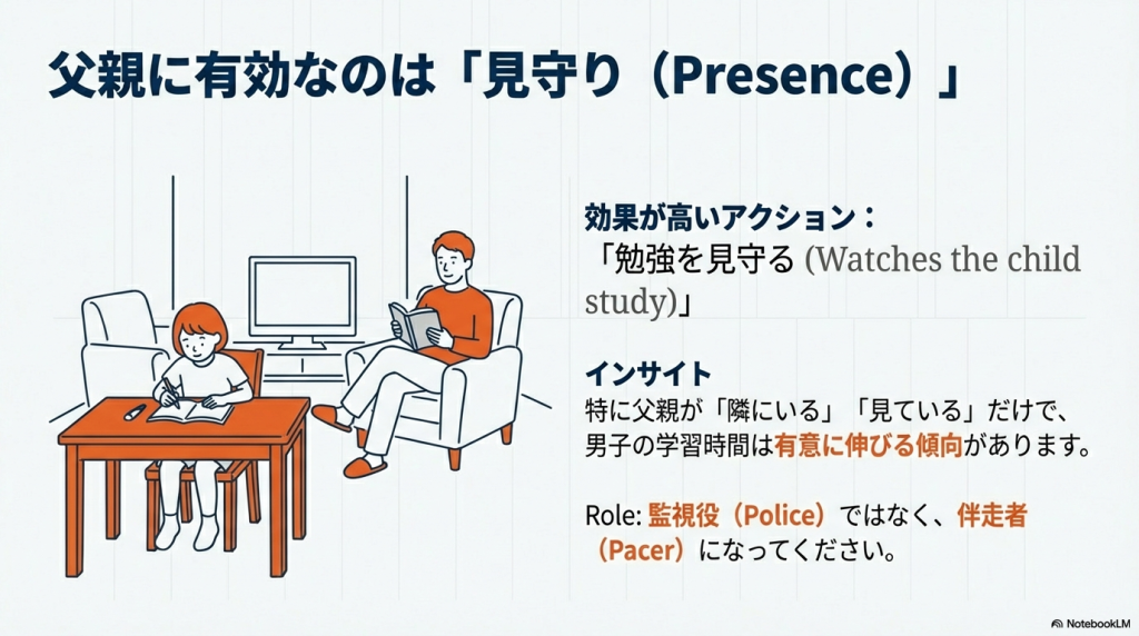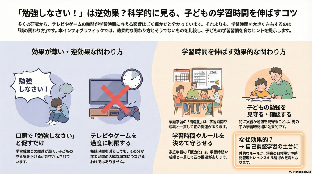 一方で、親がどう関わるかは、学習時間を大きく左右する。」