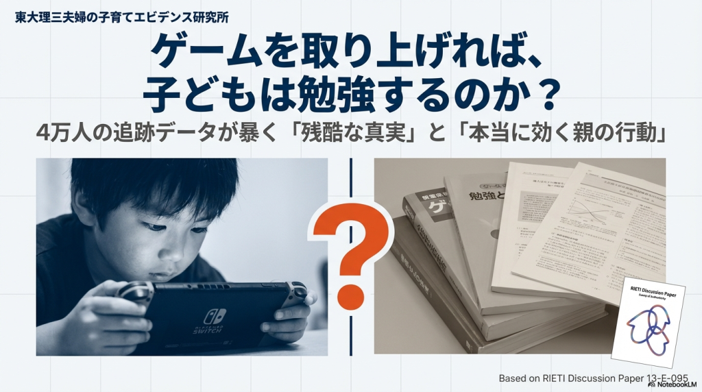 私が「子育て」と「非認知能力」、そして「科学的根拠に基づく子育てEBE(Evidence Based Education)」について興味を持つきっかけになった本が、この論文の著者の中室牧子氏の、「まんがでわかる「学力」の経済学 」です。この漫画にものっていた論文、原著をNotebookLMに解説してもらいました。
