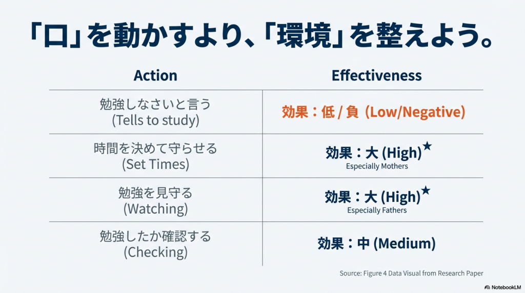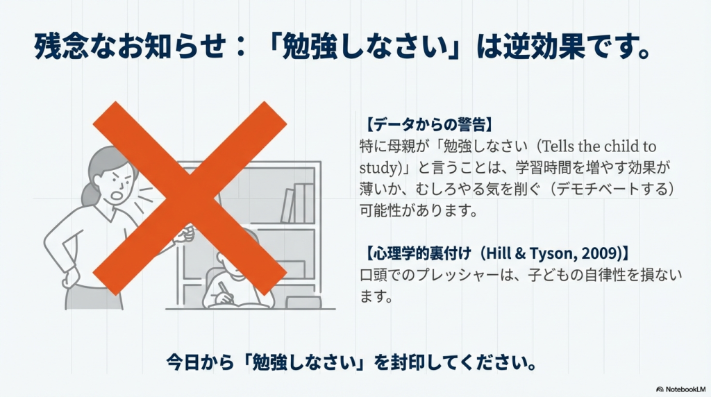 「勉強しなさい」は逆効果?科学が示す“本当に効く”親の関わり方【Nakamuro, 2013】
