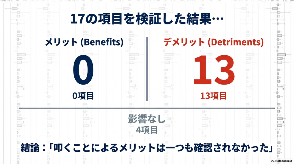 👉 17項目中13項目で有意な負の関連