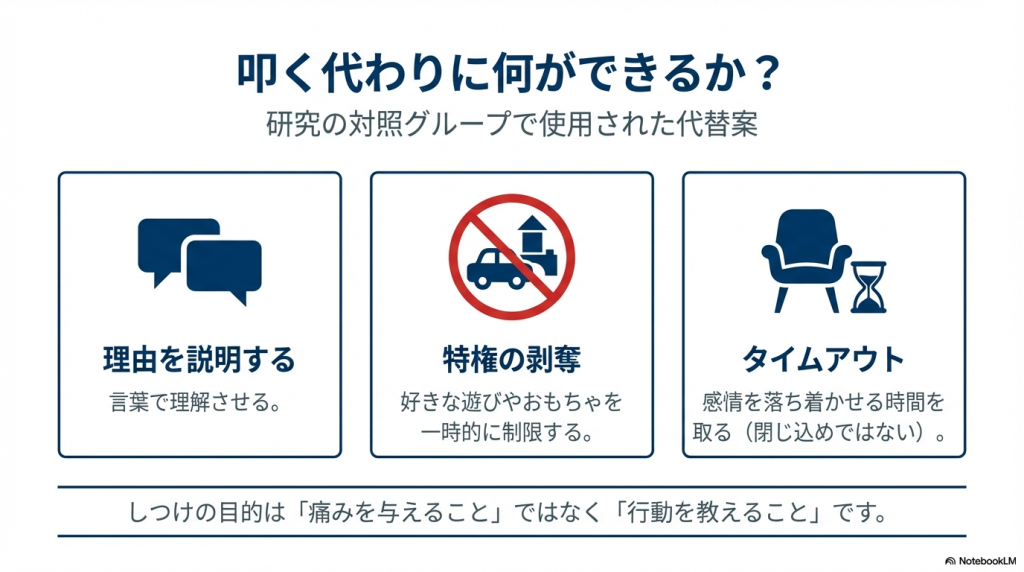 親が、しつけ目的で、手で子どもの臀部や四肢を叩く行為 - 物を使う、怪我を伴う行為、明確な虐待は除外
