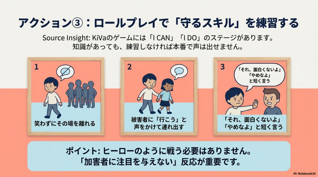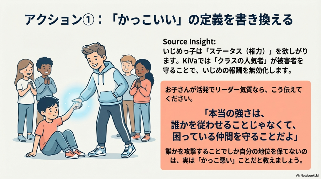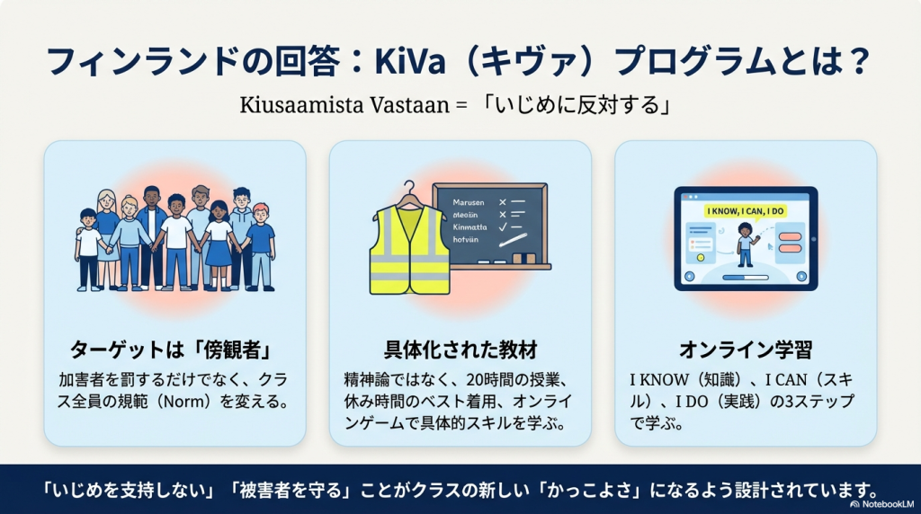 「周囲の反応」を変えることで、いじめそのものを成立しにくくする。