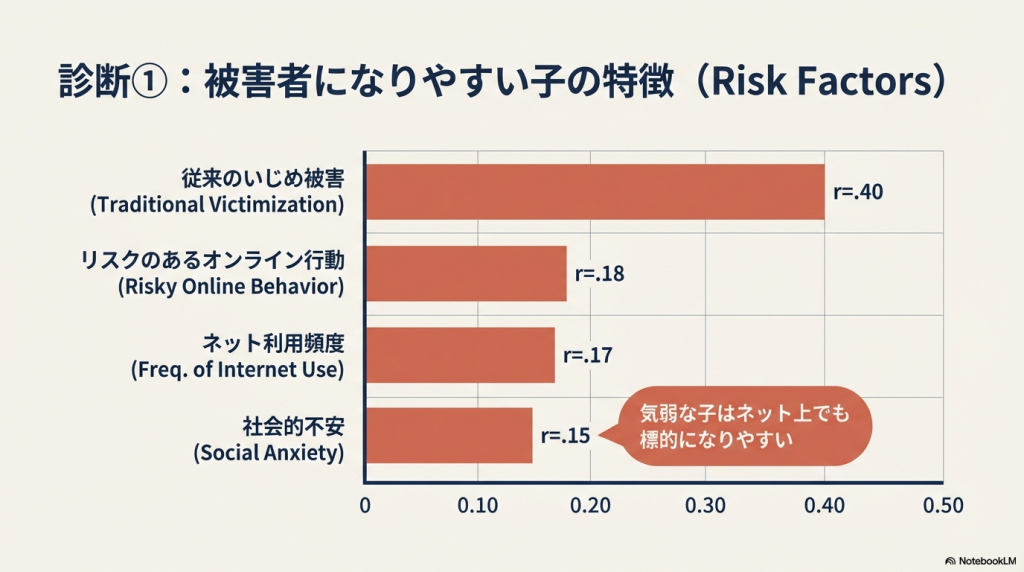 - 被害(cyberbullying victimization)