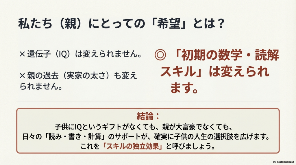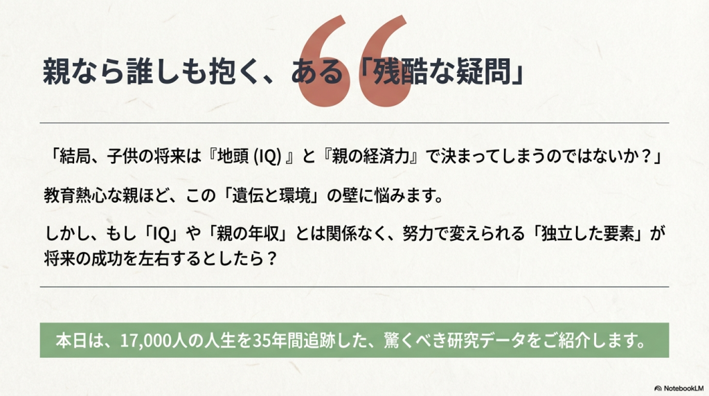 - 「人生全体の社会的アウトカムに長期的影響がある」