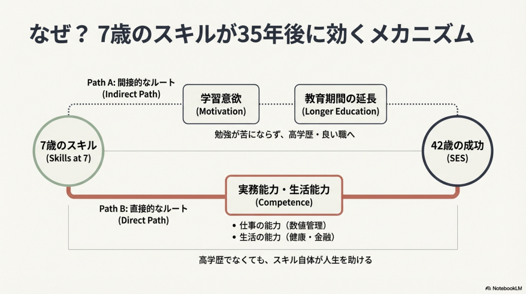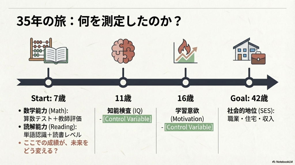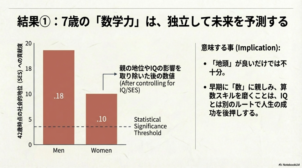 - 7歳時の数学・読解力は、42歳時のSESと有意に関連
