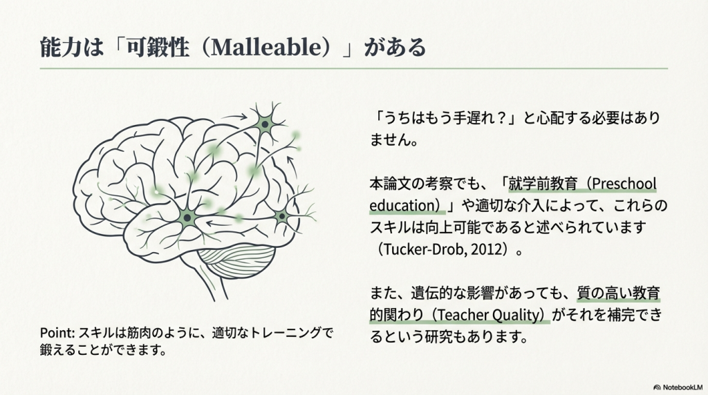 - 「幼少期の学力は、テストの点数のためだけではない」