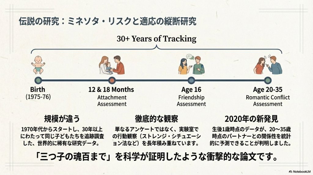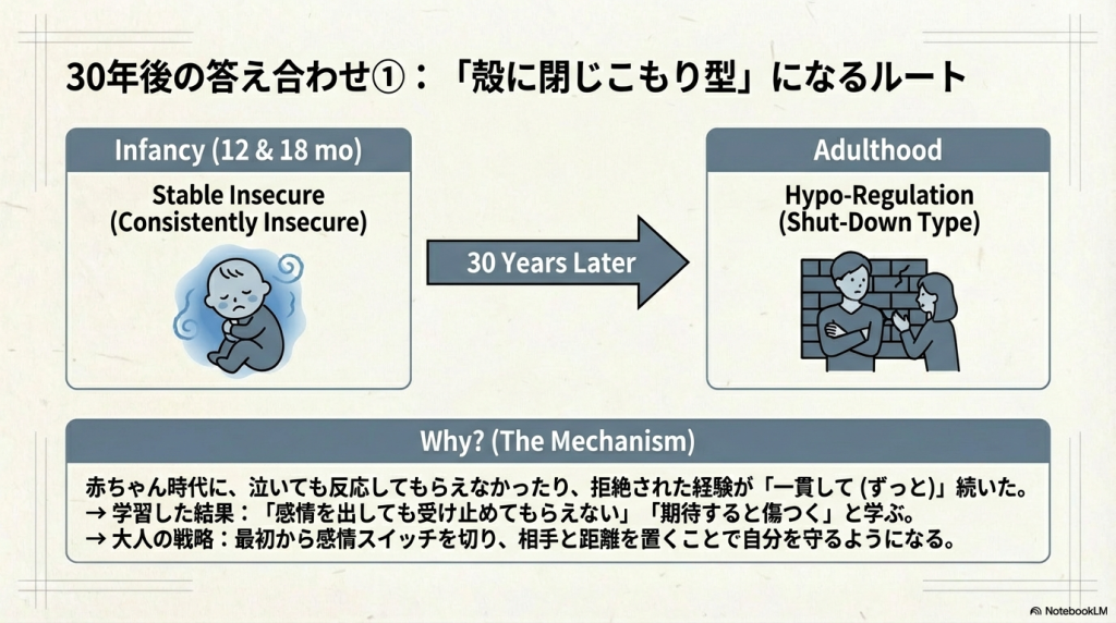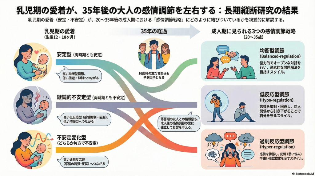 → 乳児期の愛着の質が、20–35年後の感情調整「スタイル」を予測