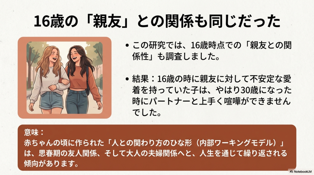 - 16歳時の親友との愛着の不安定さも独立して