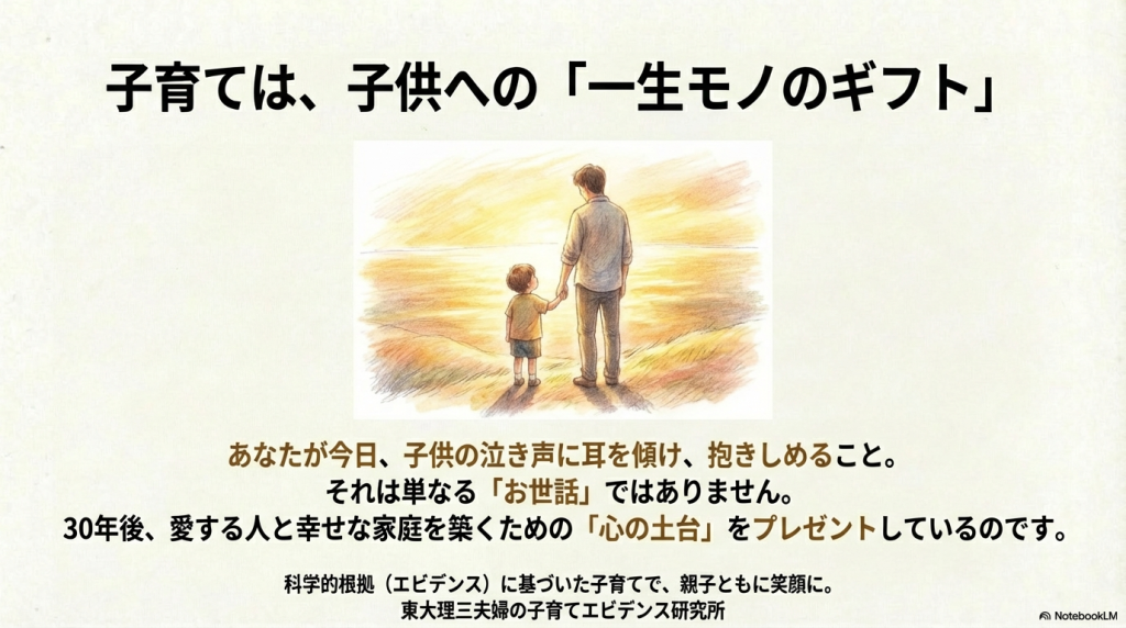 「人生の初期(0歳〜幼児期)に形成された『愛着(アタッチメント)』の質が、その後の人生のあらゆる段階での能力を予測する」
