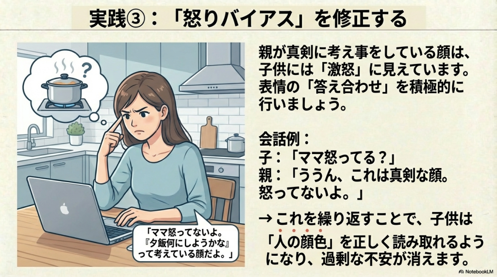 - 「曖昧な表情=怒っている」と誤認しにくくなる