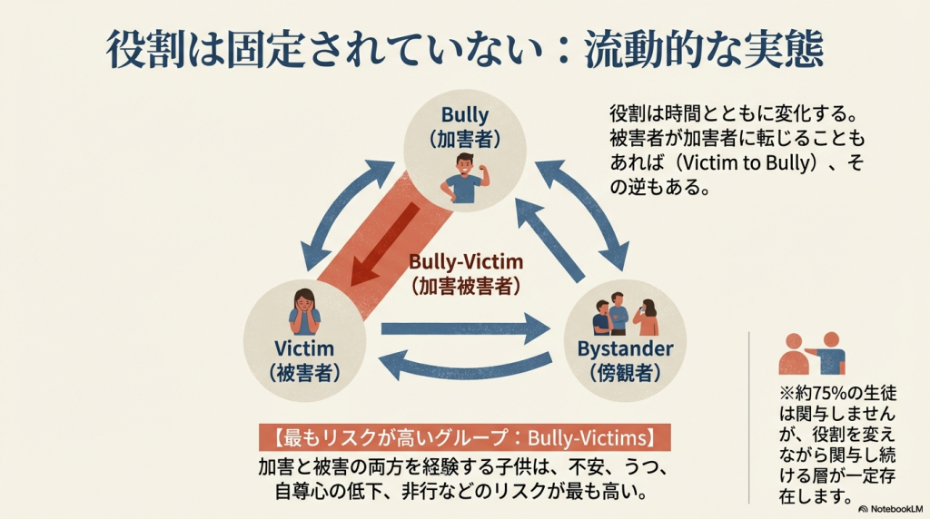 (いじめの被害者・加害者・両方(bully-victim)・傍観者を含む)