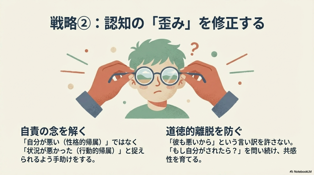 - 「シンキング・エラー」:加害者が被害者ほど深刻に事態を捉えないこと(不公平な影響)