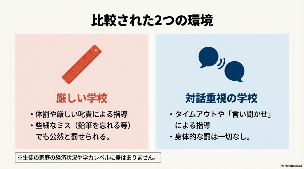 - 懲罰的(punitive)な学校環境