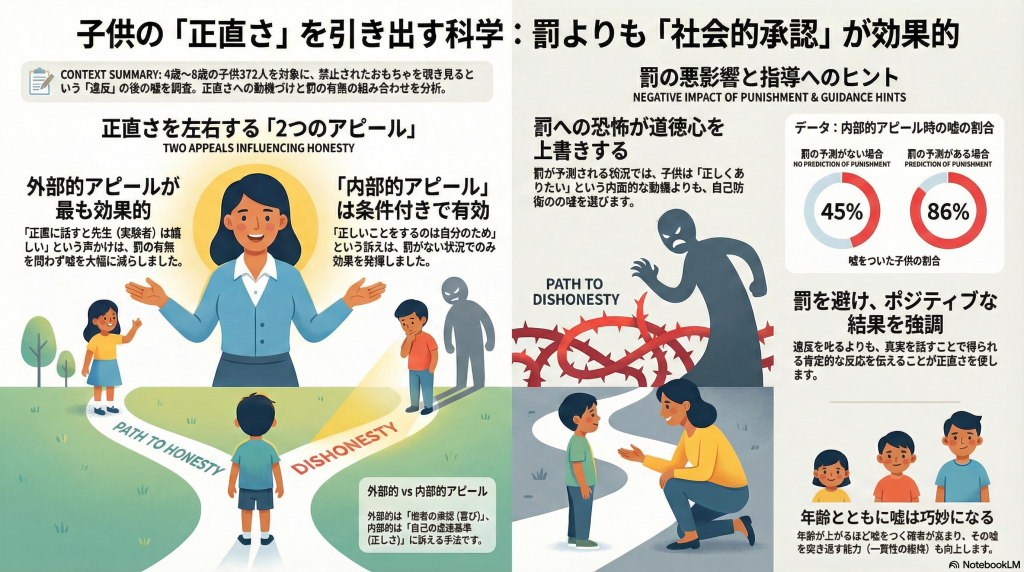 罰と正直さへの訴えが子どもの真実を語る行動に与える影響