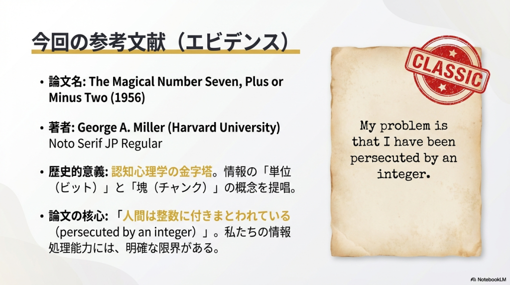 と書いてあったので、その有名な論文をNotebookLMに解説してもらいました。
